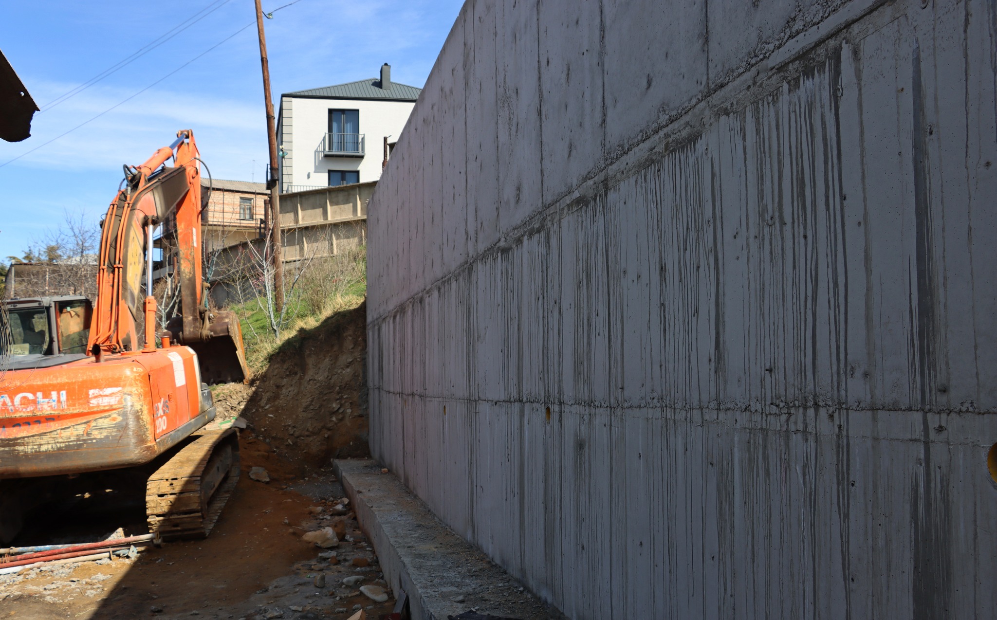 რკინა - ბეტონის საყრდენი კედლების მშენებლობა
