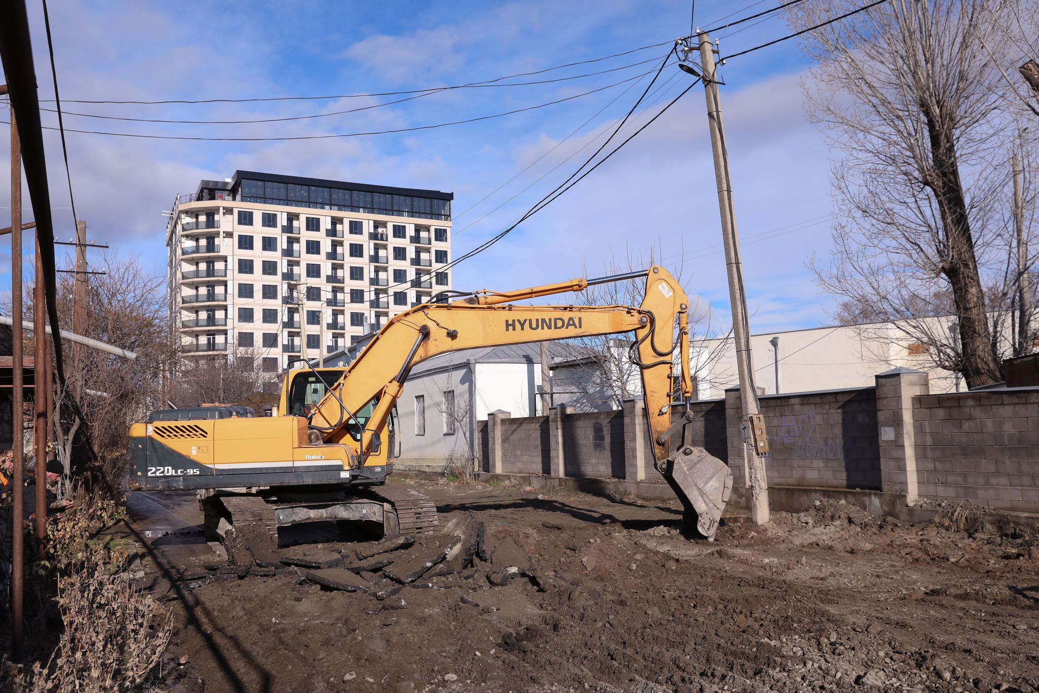 ქუჩაზე უკვე დაიგო ასფალტის საფარის პირველი პირი.