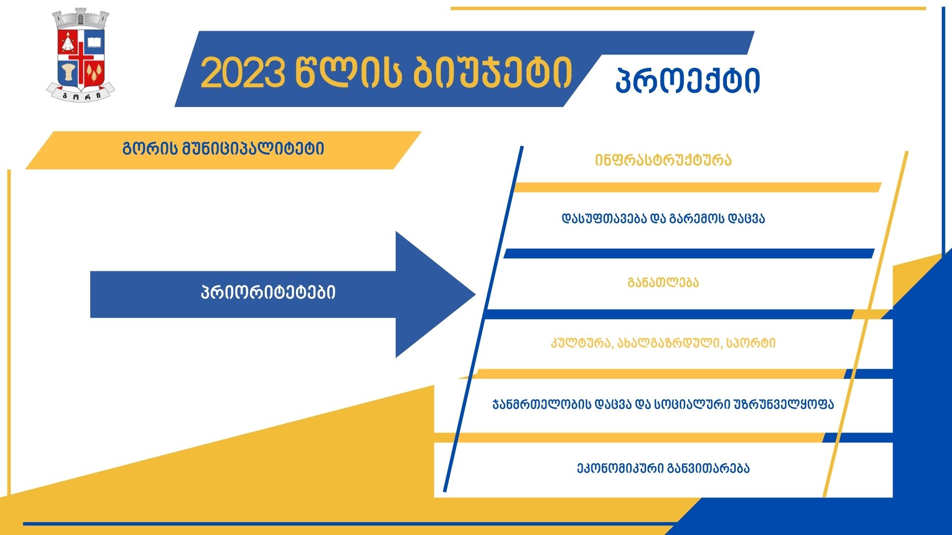 გორის მუნიციპალიტეტის 2023 წლის ბიუჯეტი 6 პრიორიტეტულ მიმართულებაზე გადანაწილდება.