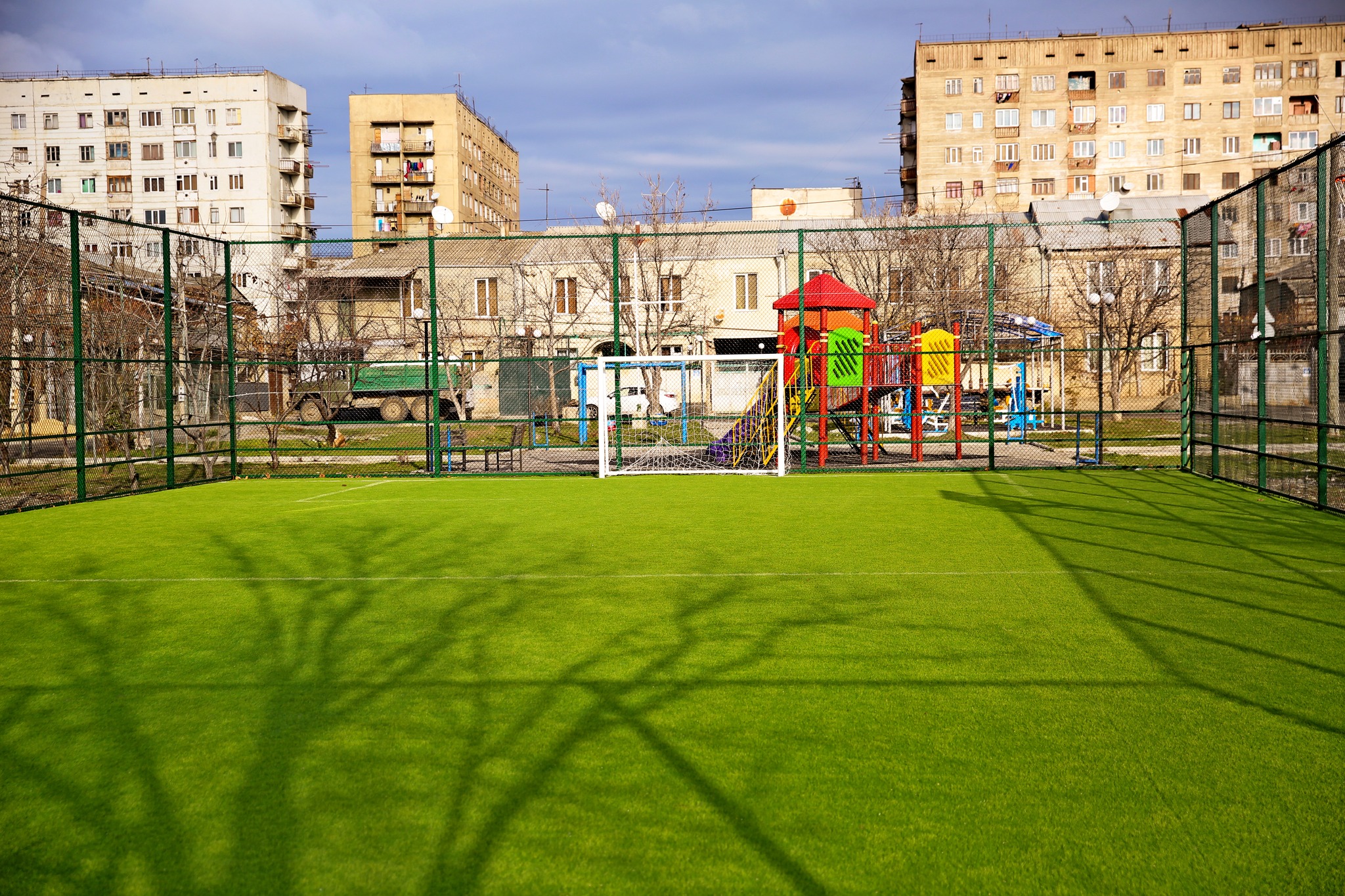 ახლადმოწყობილი სპორტული მოედანი მუსხელიშვილის ქუჩაზე მდებარეობს.