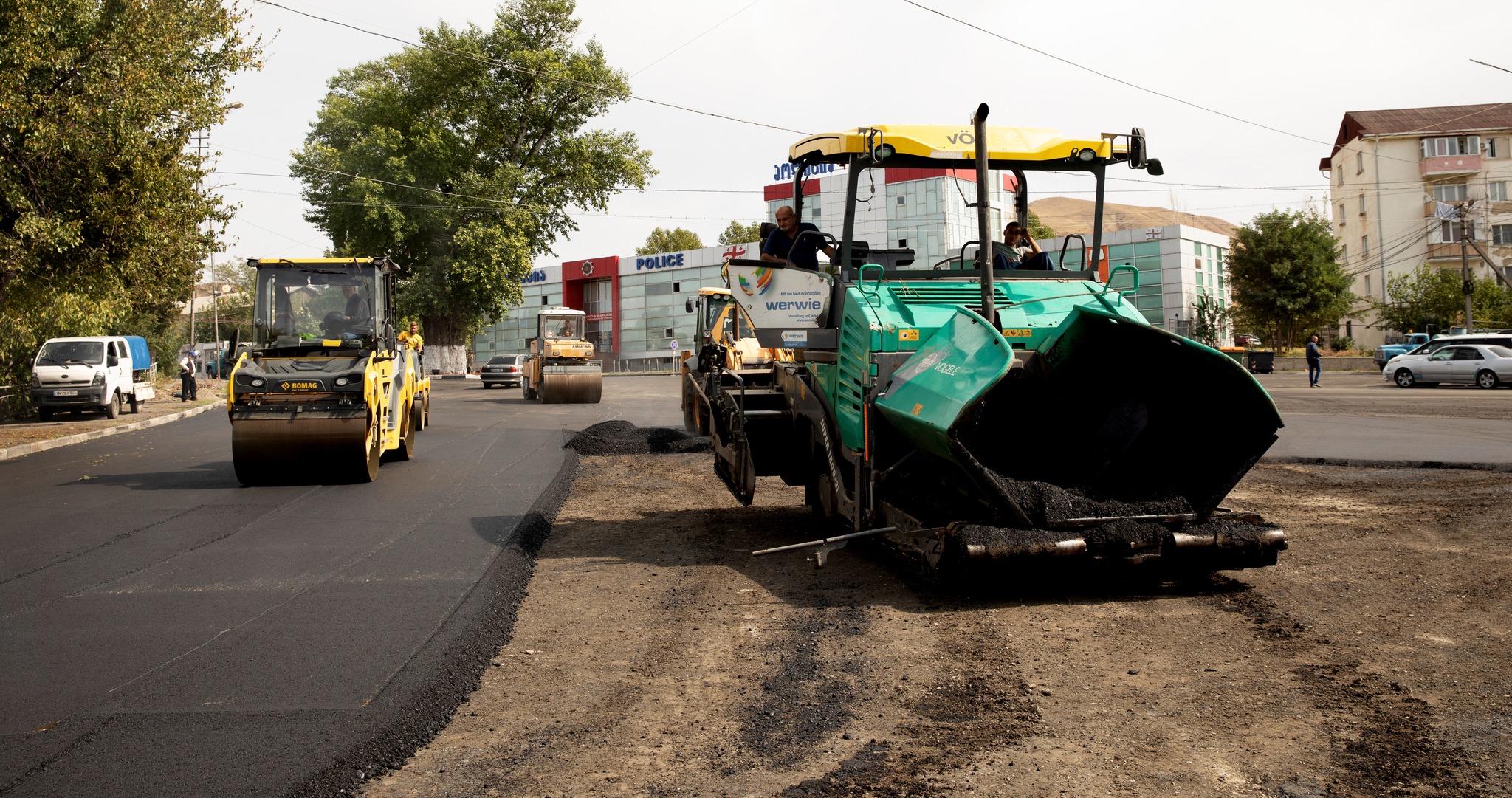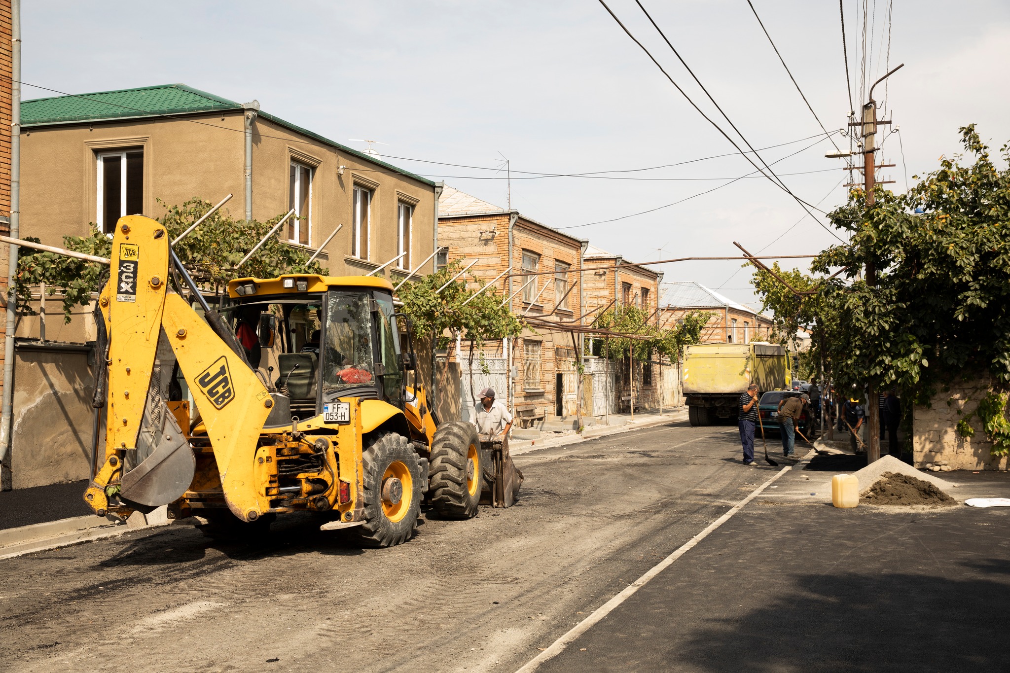 იაკობ ჯუღაშვილის ქუჩაზე, ამ ეტაპზე ასფალტის საფარის დაგება მიმდინარეობს.